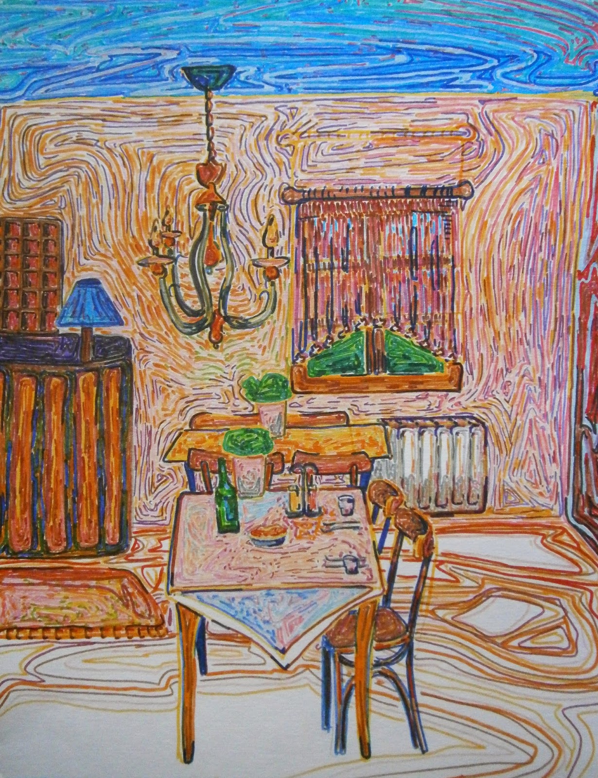 ”Το χαρακτηριστικό αυτής της ζωγραφικής είναι οι γραμμές, όπου είναι συνεχόμενες ή διακεκομμένες.Αυτές οι χρωματιστές γραμμές συνθέτουν τον ζωγραφικό χώρο και από την άλλη τον διασπούν σε μικρά και μεγαλύτερα σχήματα.Επίσης εν μέρει δεν υπάρχουν αυστηρά όρια μεταξύ των ζωγραφικών αντικειμένων.