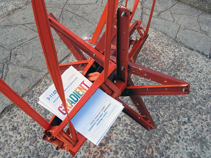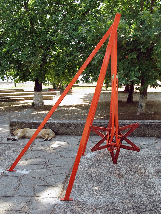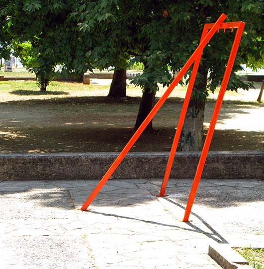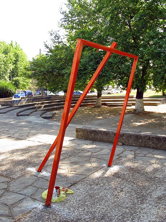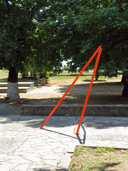 Μία γλυπτική εγκατάσταση, συνδεδεμένη με τον κονστρουκτιβισμό και το μινιμαλισμό, τοποθετήθηκε στην αρχή του πλακόστρωτου νοητού κανάβου του υπαίθριου πάρκου, που έμελλε να μεταμορφωθεί από τις 3 έως τις 11 Ιουλίου, χάριν των εφήμερων και μόνιμων παρεμβάσεων απ’ τους συμμετέχοντες καλλιτέχνες του εικαστικού project.