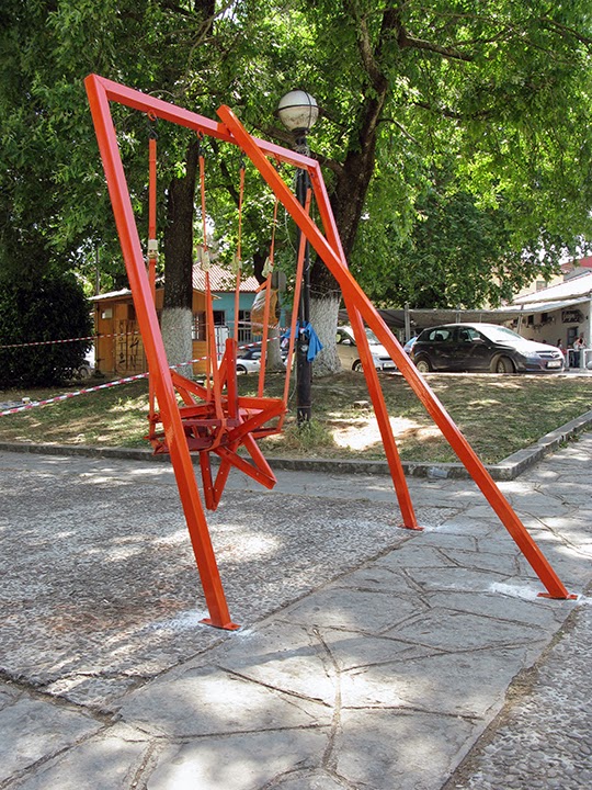 Η παραλίμνια περιοχή “Θεατράκι”, επιλέχθηκε απ’ τους διοργανωτές του εικαστικού project GRADIENT: FROM GRAY TO COLOR SCALE, για την πρώτη εικαστική παρέμβαση του Γιώργου Κεβρεκίδη, με τίτλο LOVE BIRDS’ SWING….