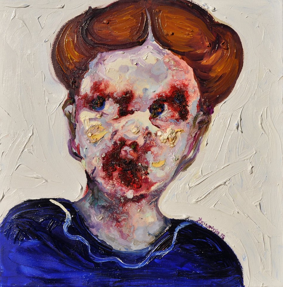 «Η εκτροπή από κάποια αρχική πορεία της ζωγραφικής (εικαστικής) πράξης και η τραυματική παρέκκλιση των χαρακτηριστικών της πρωταρχικής μορφής πολλές φορές προκύπτουν από την σαγήνευσητου υλικού. Σύμφωνα με τον Jean Baudrillard η σαγήνη ισοδυναμεί με τη κατάργηση της αναπαράστασης, δηλαδή της απόστασης μεταξύ της πραγματικότητας της εικόνας. Το μελάνι και τα λάδια ως πρόσχημα, γεφυρώνουν την απρόβλεπτη τύχη της απόστασης μεταξύ της πραγματικότητας και μιας εγκαταλελειμμένης σε αβεβαιότητα συνθήκης όπου το αποτέλεσμα λειτουργεί ως αμφισβήτηση. Η σαγήνη είναι πάντοτε σαγήνη του κακού και φροντίζει να καταστρέφει την τάξη. Σε αυτή τη περίπτωση, την τάξη της δομής των μορφών δημιουργώντας παραμόρφωση. Γένος θηλυκού, όπως τα εικονιζόμενα κορίτσια, η σαγήνη εγκλωβίζεται μέσα στις μορφές τους εκτρέποντας την αρχική τους όψη και πολλαπλασιάζοντας τα περιθώρια «λάθους» στην απόδοση της παγωμένης χρονικά μορφής. είναι αποδεσμευμένος από τη φυσιοκρατική αντίληψη της αναπαραστατικής τέχνης. Το υλικό μετουσιώνεται και το τυχαίο μαζί με το συνειδητό συγκρατεί τη μορφή στο χώρο, ο οποίος είναι αποδεσμευμένος από τη φυσιοκρατική αντίληψη της αναπαραστατικής τέχνης. Ο χώρος ιστορικά προτείνετε συνεχώς σαν μια επινοημένη ψευδαισθησιακή συνθήκη αναπαράστασης, γι’ αυτό η αποδεσμευτική του φυσιοκρατικότητα δικαιώνεται εύκολα σε μια συμβολική διάσταση. Το σχηματικό χωρικό ανάπτυγμα του εξάλφα συμβολίζει την αρμονία και την ισορροπία και έρχεται σε αντίθεση με την άτακτη γραφή της μορφής. Το έργο βρίσκεται στο μεταίχμιο μεταξύ του απροσδόκητου και του προβλέψιμου».