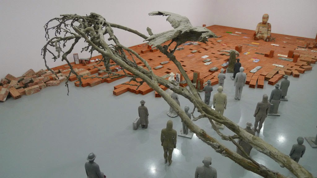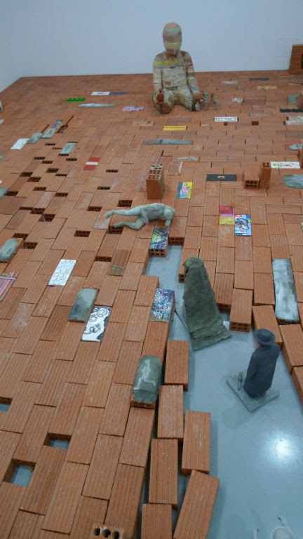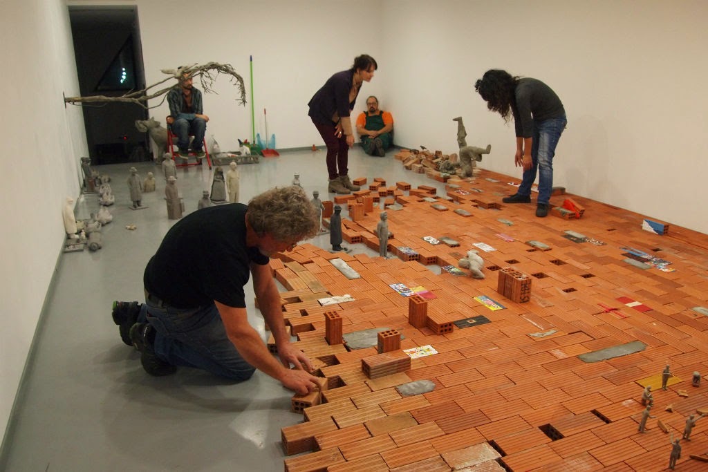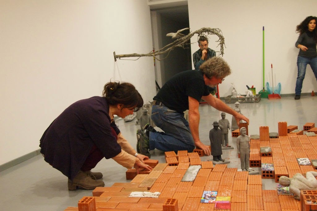 Πλήθη και πλίνθοι-Δεσμώτες της εντροπίας. εικαστική συνεργατική εγκατάσταση,γύψος τσιμέντο, τούβλα ευρεθέντα αντικείμενα, μεταβλητές διαστάσεις